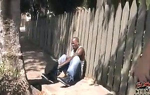 Mandy is getting pissed, her ride is late again, and she is tired of waiting out in the hot sun to get picked up. Just then, Flash walks by, and as he is checking her out, he doesn't see the crack in the sidewalk that he trips over, and goes crashing to the ground. Mandy has medical knowledge, and volunteers her skills to see if anything is damaged. Seems like a sprained ankle, so she offers to take him back to her nearby house, and ice it down. Once she gets him inside, she starts getting other ideas of what else she can do with this giant black man, and uses her wiley cougar skills to suck him in...literally! She convinces him that the best way to take the swelling down is to draw the blood to another part of the body, and his ample third leg should easily do the trick. Once she sucks him hard, there is no turning back, so she moves on to getting something for her troubles from this huge black bounty. She lets her wet pussy feast on this throbbing ebony pole just like her mouth did, and after it's satisfied, she goes back to her knees to finish him off in her hungry mouth!