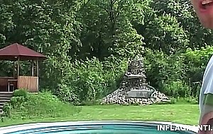 Horny amateur enjoying outdoor sex by the pool. German grandpa strikes lucky with younger skinny slutty pussy.