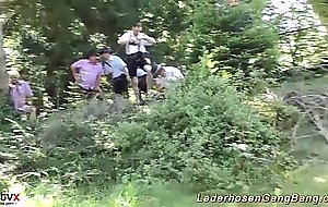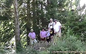 extreme wild german amateur lederhosen groupsex gangbang orgy in nature with two crazy chicks