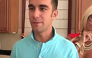 Blonde milf seduces young boy to eat her pussy