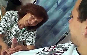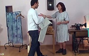 Sewing granny takes his cock